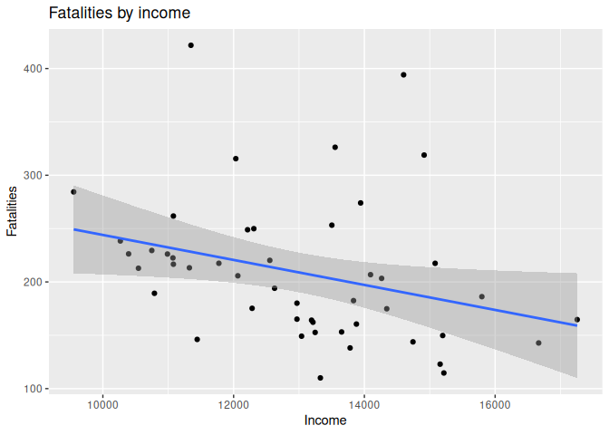 8 labs(title = "Fatalities by income", x = "Income", y = "Fatalities")