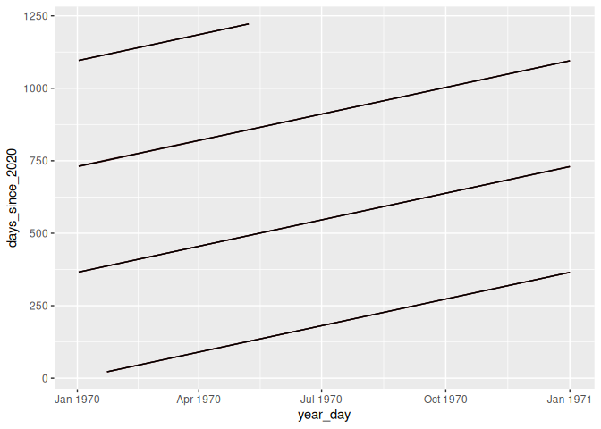 12 geom_line(aes(x = year_day, y = days_since_2020, group=year_num))